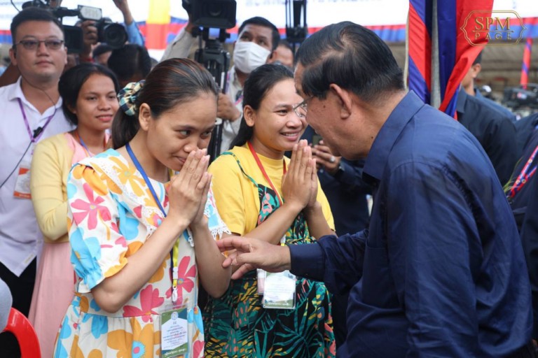 សម្តេចតេជោ ហ៊ុន សែន ពិតជារីករាយដែលបានអញ្ជើញមកជួបជាមួយបងប្អូនកូនក្មួយ កម្មករ កម្មការិនីនៅតំបន់ព្រៃស្ពឺ ក្នុងខណ្ឌពោធិ៍សែនជ័យ រាជធានីភ្នំពេញ ជាថ្មីម្ដងទៀត ។ សម្តេចតេជោបានអរគុណដល់បងប្អូនកូនក្មួយ កម្មករ កម្មការិនី ដែលមានការស្រឡាញ់ រាក់ទាក់ចំពោះសម្ដេចផ្ទាល់នាពេលនេះ។ សម្ដេចតេជោបានមានប្រសាសន៍ចាត់ទុកថា ទំនាក់ទំនងនេះមិនមែនគ្រាន់តែជាទំនាក់ទំនងរវាងនាយករដ្ឋមន្ដ្រី និងកម្មករនិយោជិតប៉ុណ្ណោះទេ ប៉ុន្ដែនេះបានបង្ហាញអំពីទំនាក់ទំនងដូចជា តា និងចៅ ពូ និងក្មួយ ផងដែរ។