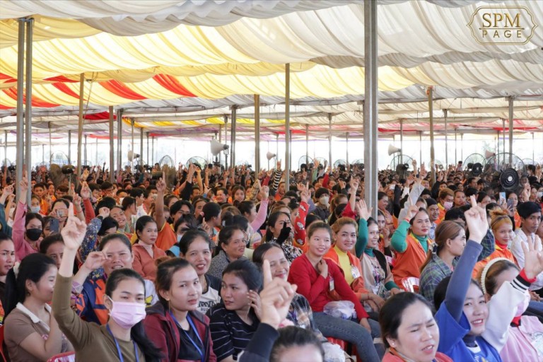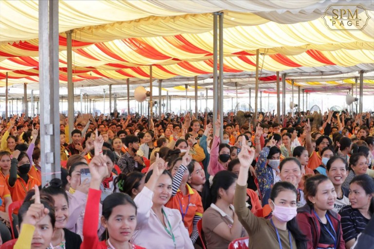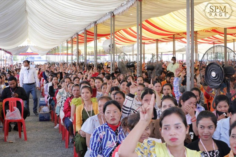 សម្តេចតេជោ ហ៊ុន សែន ពិតជារីករាយដែលបានអញ្ជើញមកជួបសំណេះសំណាលជាមួយបងប្អូនកម្មករ កម្មការិនី នៅម្ដងទៀតនៅស្រុកសំរោងទង និងស្រុកគងពិសី ខេត្តកំពង់ស្ពឺនេះម្តងទៀត បន្ទាប់ពីបានជួបកាលពីឆ្នាំ២០១៨កន្លងទៅ។