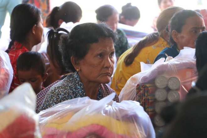 សូមបញ្ជាក់ថាអំណោយចែកជូននាពេលនោះក្នុងមួយគ្រួសារទួលបាន អង្ករ២៥ គីឡូ មីជាតិ១កេះ ប្រេងឆា១ដប ត្រីខ ១យួ កន្ទេល១ ភូយ១ ម៉ុង១ ប៊ីចេង១កញ្ចប់ និងចានដែក១ផងដែរ ៕