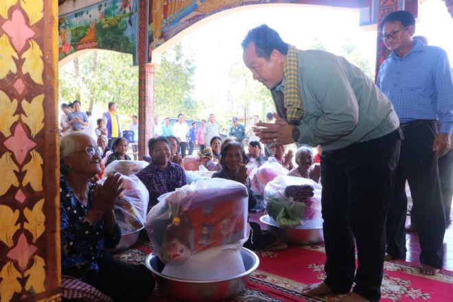 មានប្រសាសន៍សំណេះសំណាលក្នុង ឱកាសនោះ ឯកឧត្តមបណ្ឌិតអភិបាលបានពាំនាំផ្ដាំផ្ញើសាកសួរ សុខទុក្ខពីសំណាក់សម្ដេច អគ្គ មហាសេនាបតីតេជោ ហ៊ុន សែន នាយករដ្ឋមន្ត្រី នៃព្រះរាជាណាចក្រកម្ពុជា និង សម្ដេចកិត្តិព្រឹទ្ធបណ្ឌិត ប៊ុន រ៉ានី ហ៊ុន សែន ប្រធានកាកបាទក្រហមកម្ពុជា ជានិច្ចកាលសម្ដេចទាំងទ្វេតែងតែយកចិត្តទុកដាក់ ជាទីបំផុតចំពោះសុខទុក្ខរបស់លោកតា លោកយាយ អ៊ុំ ពូ មីង បងប្អូន កូនក្មួយ ទាំងអស់ សំខាន់គឺទីណាមានទុក្ខទីនោះ មានសម្ដេចទាំង២ មកជួយ មិនដែលខាន ។