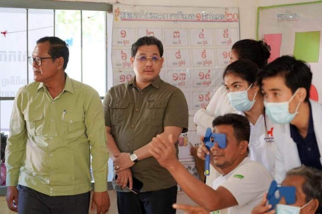 ឯកឧត្តម ខៀវ កាញារីទ្ធ រដ្ឋមន្ត្រីក្រសួងព័ត៌មាន និងជាប្រធានក្រុមការងាររាជរដ្ឋាភិបាលចុះជួយមូលដ្ឋានស្រុកកោះសូទិន ខេត្តកំពង់ចាម អញ្ជើញជាអធិបតី ពិធីបើកកម្មវិធីពិនិត្យ និងព្យាបាលភ្នែក ជូនបងប្អូនប្រជាពលរដ្ឋទូទាំងស្រុកកោះសូទិន ដោយក្រុមគ្រូពេទ្យស្ម័គ្រចិត្តមូលនិធិចក្ខុខ្មែរ សហការជាមួយនឹងក្រុមគ្រូពេទ្យស្ម័គ្រចិត្ត ឯកឧត្តម ខៀវ កាញារីទ្ធ នាព្រឹកថ្ងៃទី២៣ ខែមិថុនា ឆ្នាំ២០២៣ នៅឃុំមហាខ្ញូង ស្រុកកោះសូទិន ខេត្តកំពង់ចាម ដែលពិធីបើកនៅថ្ងៃនេះ មានបងប្អូនប្រជាពលរដ្ឋប្រមាណ ជិត ៤០០នាក់ មកពីឃុំចំនួន ០៣ គឺឃុំមហាខ្ញូង ឃុំកំពង់រាប និងឃុំព្រែកតានង់ ហើយនៅថ្ងៃទី២៤ ខែមិថុនាស្អែកនេះ នឹងបន្តពិនិត្យ និងព្យាបាលជូនបងប្អូនប្រជាពលរដ្ឋចំនួន ០៥ឃុំ ប្រមាណជិត ២ ០០០ នាក់ បន្ថែមទៀត។