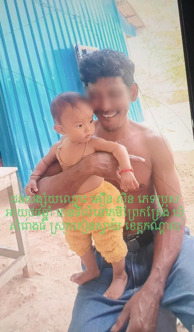 ប្រភពពីសមត្ថកិច្ចនគបាលបានអោយដឹងថាជនរងគ្រោះមានឈ្មោះសែម គឹមសាន ភេទស្រី អាយុ៤៤ឆ្នាំ ជនជាតិខ្មែរ មុខរបរកម្មកររោងចក្រ មានទីលំនៅភូមិព្រែកត្រែង ឃុំសំរោងធំ ស្រុកកៀនស្វាយ ខេត្តកណ្តាល ត្រូវជាប្រពន្ធជនសង្ស័យចំណែកឯជនសង្ស័យមានឈ្មោះអឿន ស៊ិន ភេទប្រុស អាយុ៤៤ឆ្នាំ ជនជាតិខ្មែរ មុខរបរកសិករ មានទីលំនៅភូមិព្រែកត្រែង ឃុំសំរោងធំ ស្រុកកៀនស្វាយ ខេត្តកណ្តាល ត្រូវជាប្តីជនរងគ្រោះ គេចខ្លួន។