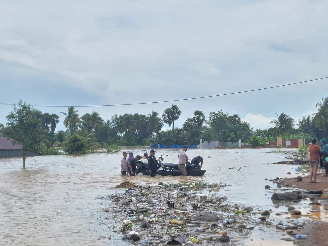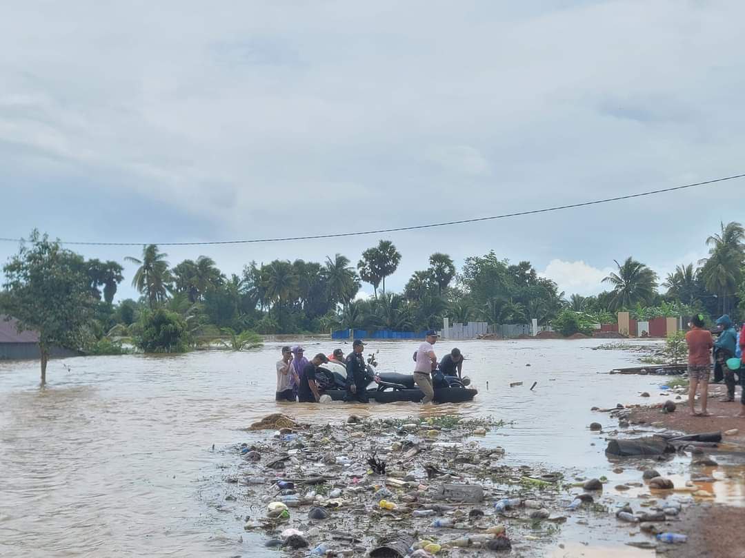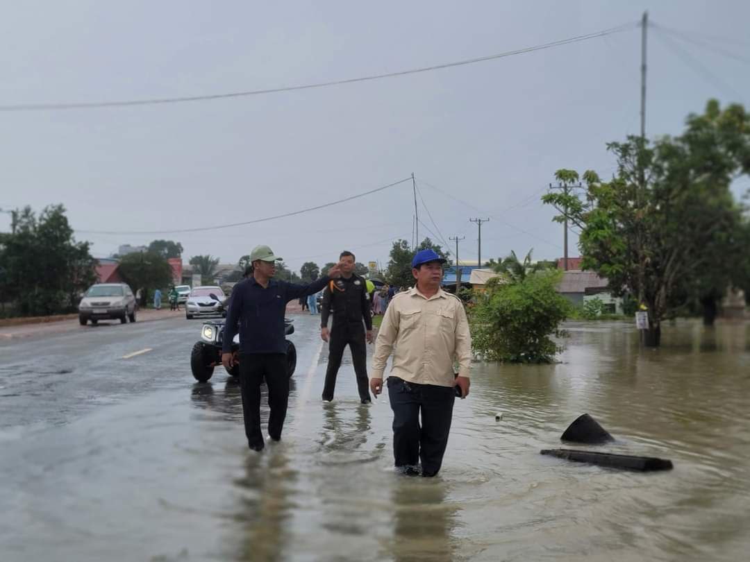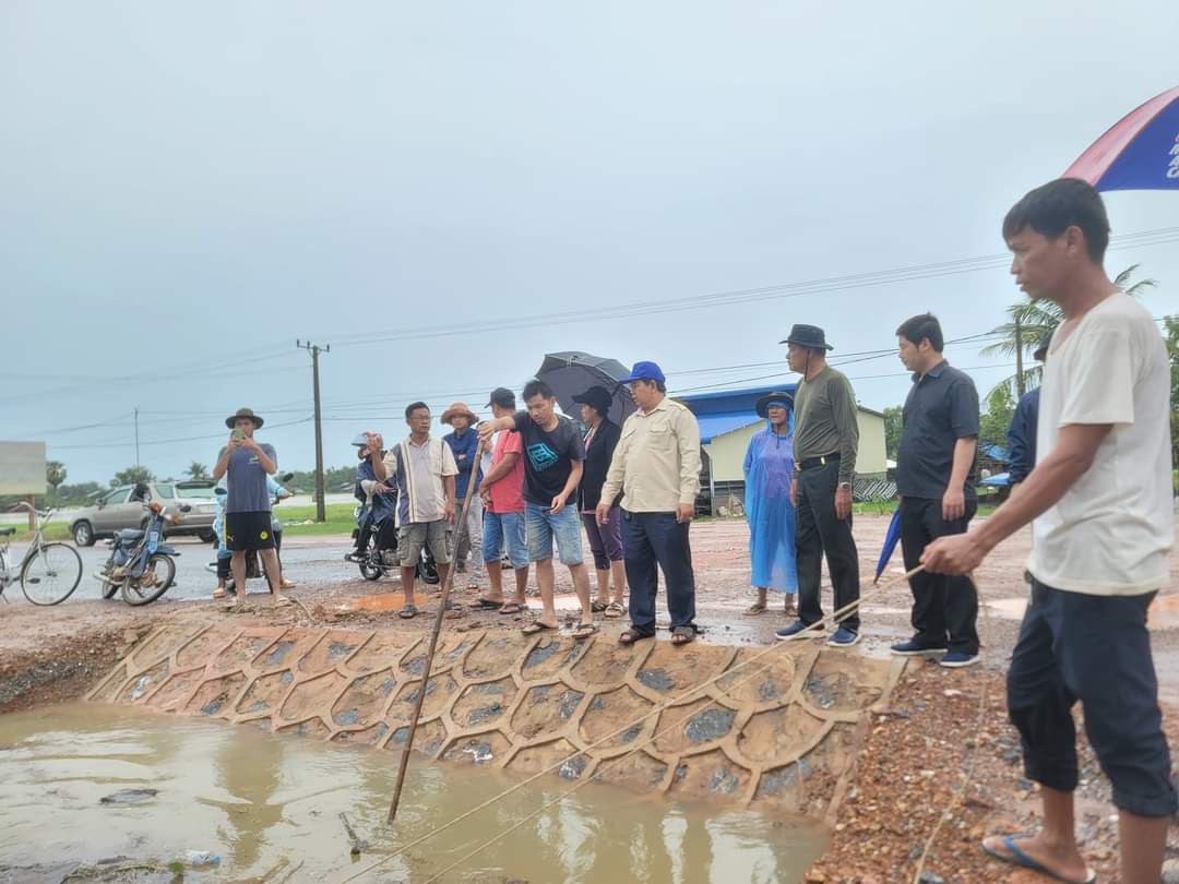 កំពត ៖ នាព្រឹកថ្ងៃទី៣០ ខែ កក្កដា ឆ្នាំ ២០២៣ អូន ខន អភិបាល នៃគណៈអភិបាលស្រុក និងជាប្រធានគណៈបញ្ជាការឯកភាពរដ្ឋបាលស្រុក បានដឹកនាំកងកម្លាំងទាំង៣ប្រភេទ និងកម្លាំងបញ្ជាការដ្ឋានវរៈលេខ២ការពារព្រំដែន ចុះពិនិត្យស្ថានភាពជំនន់ទឹកភ្លៀងស្ថិតនៅភូមិកំពង់ត្រាចទី២(ភូមិពីរ) និងភូមិដើមចារ ឃុំកំពង់ត្រាចខាងលិច ព្រមទាំងចុះអន្តរាគមន៍ចេញបទបញ្ជារជួយដឹកជញ្ជូនសម្ភារៈប្រើប្រាស់ផ្សេងៗ(ម៉ូតូ ស្រូវ អង្ករ…) និងសត្វចិញ្ចឹម (ជ្រូក គោ មាន់ ទា…) របស់ប្រជាពលរដ្ឋទៅកាន់ទីទួលសុវត្ថិភាព។ ចំពោះគ្រោះមហន្តរាយជំនន់ទឹកភ្លៀងនេះបានបណ្ដាលឲ្យប៉ះពាល់យ៉ាងធ្ងន់ធ្ងរដល់លំនៅដ្ឋានរបស់ប្រជាពលរដ្ឋនៅជុំវិញទំនប់ទឹកអូរច្រនៀងប៉ុន្តែមិនបណ្ដាលឲ្យគ្រោះថ្នាក់ ប៉ះពាល់អាយុជីវិតរបស់ប្រជាពលរដ្ឋឡើយ។