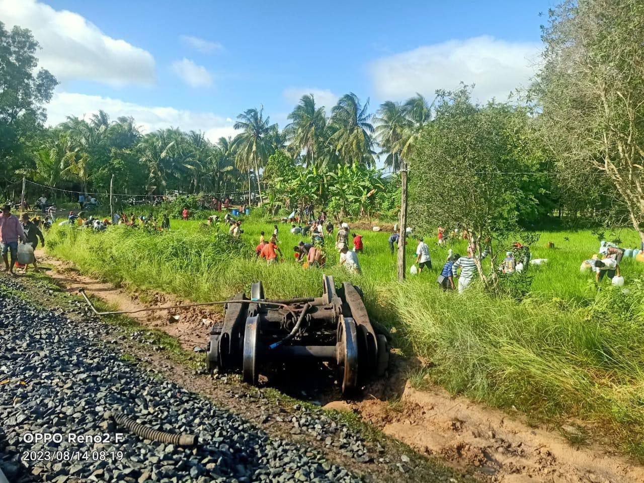 ឧបទ្ទវហេតុ រថយន្តភ្លើងក្រុមហ៊ុន Royal Railway Group បែកកង់ធ្លាក់ផ្លូវនេះ កើតឡើងនៅព្រឹកថ្ងៃទី១៤ ខែសីហា ឆ្នាំ២០២៣នេះ នៅម្តុំផ្សារដំណាក់ចង្អើរ ក្រុង-ខេត្តកែប បណ្តាលឲ្យតៃកុងរថយន្តភ្លើងរបួស ចំនួន ០២នាក់ និងធ្លាក់ស៊ីទែនប្រេង ០២ទូរ ប្រជាពលរដ្ឋនាំគ្នាទៅដងប្រេងភ្លូកទឹកភ្លូកដី។