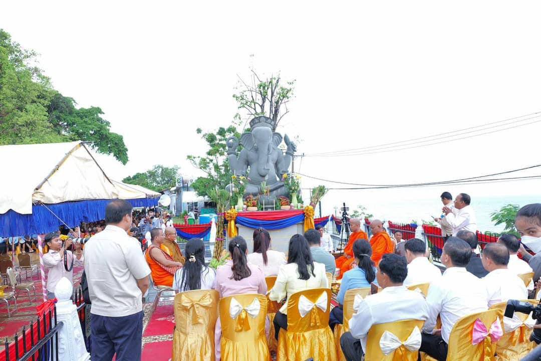 កែប៖ រូបសំណាកព្រះគណេសដែលកសាងពីថ្មភក់ស្ថិតនៅក្បែរឆ្នេរកែប ត្រូវបានរៀបចំធ្វើពិធីប្រសិទ្ធី ពលិការ និងសម្ពោធជាផ្លូវការ សម្រាប់ទុកជាទីគោរពសក្ការៈបូជាថ្មីមួយទៀតសម្រាប់ខេត្តកែប ពិសេសសម្រាប់ ពលរដ្ឋទូទៅ ភ្ញៀវទេសចរជាតិ អន្តរជាតិ គោរពបូជា និងបួងសួងសុំសេចក្ដីសុខសេចក្ដីចម្រើន។ រូបសំណាកខាងលើត្រូវបានឧបត្ថម្ភកសាងទាំងស្រុងពី អ្នកឧកញ៉ា យូ សាន្ត និងលោកជំទាវ ហេង វឿន ម្ចាស់ផ្ទះសំណាក់ ផ្ទះឆ្នេរ ក្នុងរង្វង់ថវិការប្រមាណ៦ម៉ឺនដុល្លាអាមេរិក។