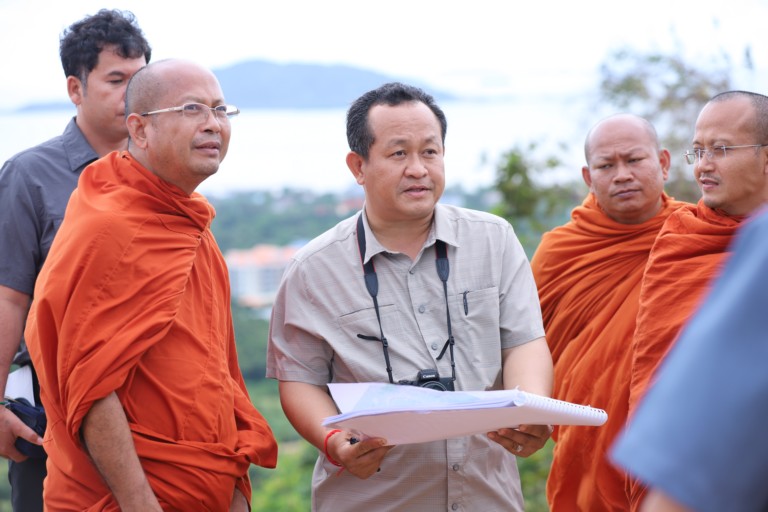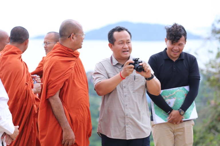 ខេត្តកែប ៖ រសៀលថ្ងៃទី២៥ ខែកញ្ញា ឆ្នាំ២០២៣ នេះ ឯកឧត្ដមបណ្ឌិត សោម ពិសិដ្ឋ អភិបាល នៃគណ:អភិបាលខេត្តកែប បានអញ្ជើញអមនិមន្ត ព្រះសាសនមុនី មហាកម្មដ្ឋានាចរិយ ហ៊ឹម ប៊ុនធឿន ធម្មត្ថេរោ ប្រធានពុទ្ធមណ្ឌលវិបស្សនាធុរៈនៃព្រះរាជាណាចក្រកម្ពុជា ចុះពិនិត្យមើលទីតាំងគម្រោងកសាងព្រះពុទ្ធរូបធំមួយអង្គ ទ្រង់ឲ្យអភយទាន កម្ពស់ ៤៥ម៉ែត្រ នៅលើកំពូលភ្នំនៃមជ្ឈមណ្ឌលវិបស្សនាធុរៈខេត្តកែប ស្ថិតនៅភូមិកែប សង្កាត់កែប ក្រុងកែប ខេត្តកែប ។