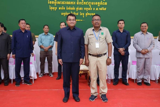មុននឹងបញ្ចប់កម្មវិធី ឯកឧត្តមរដ្ឋមន្ត្រី បានបំពាក់គ្រឿងឥស្សរិយយសការងារ ជូនដល់មន្ត្រីដែលមានស្នាដៃ និងផ្តល់ជូននូវសម្ភារ ផ្លាកសញ្ញាសុវត្ថិភាពការដ្ឋានផ្លូវថ្នល់ មួកការដ្ឋាន អាវចំណាំងផ្លាត ម៉ាស៊ីនកាត់ស្មៅ និងកៅស៊ូត្រជាក់ Cold Mix ចំនួន ២០០បាវ ដល់មន្ទីរសម្រាប់ប្រើប្រាស់ក្នុងការជួសជុលថែទាំផ្លូវ ក្នុងដែនសមត្ថកិច្ចរបស់ខ្លួន ព្រមទាំងផ្តល់កិត្តិយសថតរូបជាមួយថ្នាក់ដឹកនាំ និងមន្ត្រីទាំងអស់ទុកជាអនុស្សាវរីយផងដែរ៕