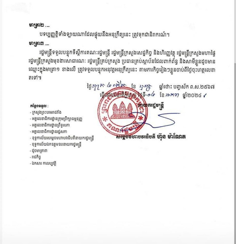 សម្តេចធិបតីនាយករដ្ឋមន្ត្រី បានគូសបញ្ជាក់យ៉ាងដូច្នេះថា៖ ថ្ងៃនេះខ្ញុំមានការចាំបាច់ត្រូវអនុវត្តអភិក្រមទី៥ គឺ “ការវះកាត់” តាមរយៈការចុះហត្ថលេខា ដើម្បីបញ្ចប់មុខតំណែង របស់អភិបាលក្រុងកែប ដែលបានប្រើប្រាស់អំណាចនៃតួនាទីរបស់ខ្លួនប្រព្រឹត្តអំពើដែលនាំឲ្យប៉ះពាល់ដល់ផលប្រយោជន៍រដ្ឋ និងផលប្រយោជន៍ជាតិ។ ការសម្រេចចិត្តនេះគឺផ្អែកទៅលើមូលដ្ឋានច្បាស់លាស់ នៃការស៊ើបអង្កេតរបស់អង្គភាពប្រឆាំងអំពើពុករលួយ។
