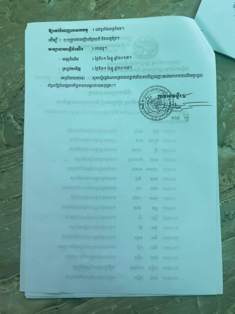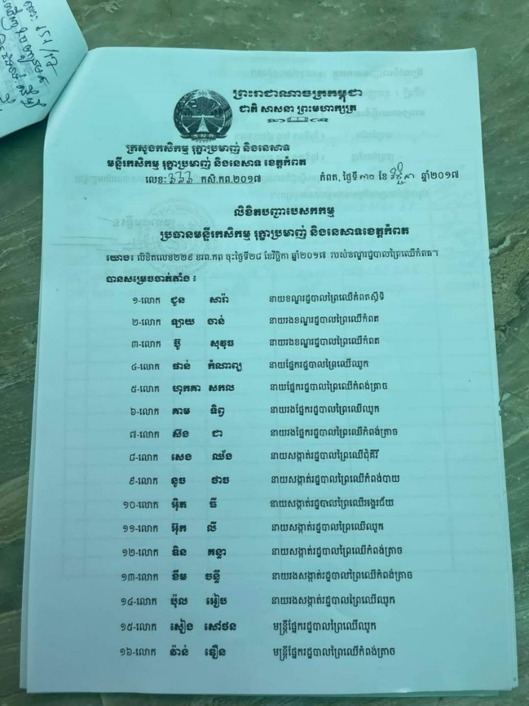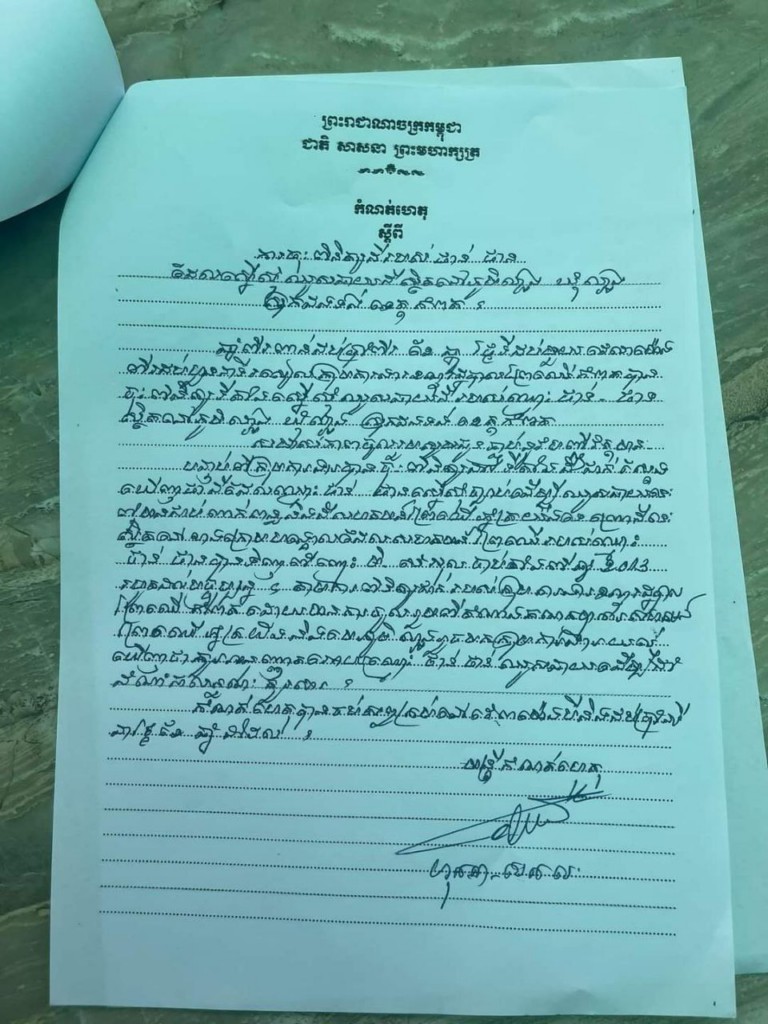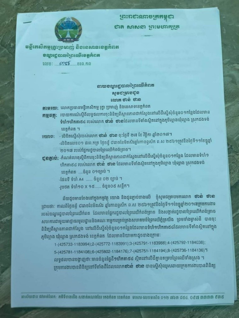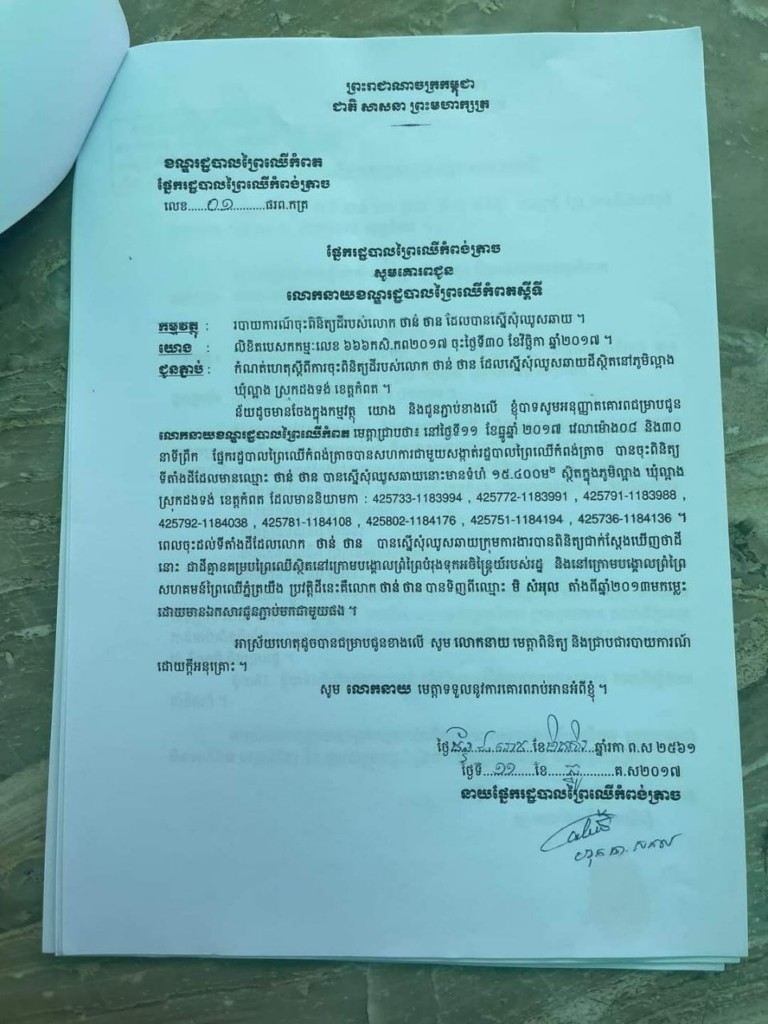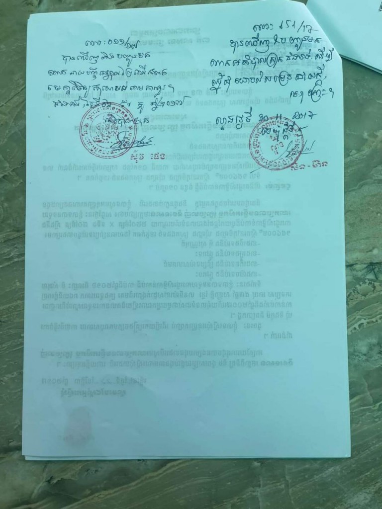 លោកបានទិញពីប្រជាពល រដ្ឋឈ្មោះ មិ អុល ភេទប្រុស .រស់នៅនៅសង្កាត់ផ្សារដើមគរ ខណ្ឌទួលគោក រាជនីភ្នំពេញ កាលពីឆ្នាំ ២ ២០១៦ លោកបានបញ្ជាក់ទៀតថា ដីរបស់គាត់ជាប់ ព្រំប្រទល់និងដីសហគមន៍ ខាងជើងជាប់ព្រំប្រទល់ឈ្មោះ មី សុវណ្ណមុតី ខាងត្បូងជាប់ផ្លូវរទេះ ខាងកើតជាប់ព្រំប្រទល់ជាមួយដីសហគមន៍ ខាងលិចជាប់ផ្លូវរទេះ។