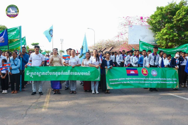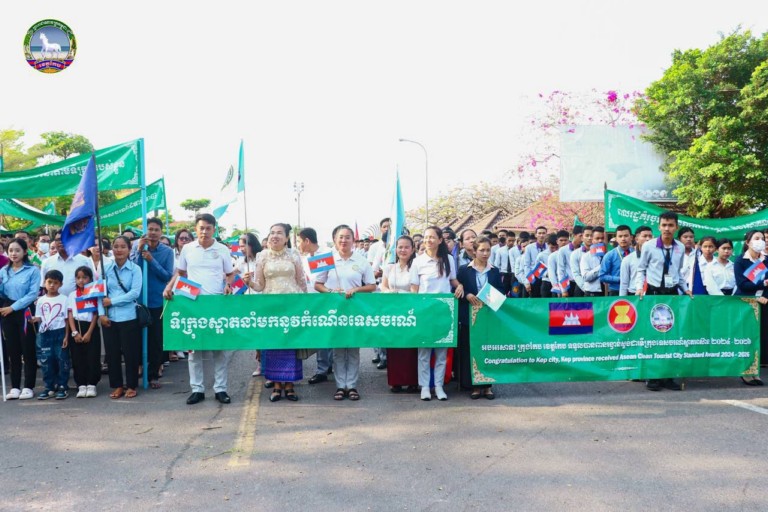 ក្នុងទឹកចិត្តសាទរ រីករាយជាមួយជ័យលាភី ក្នុងនាមជាខេត្តពានរង្វាន់ ស្តង់ដាទីក្រុងទេសចរណ៍ស្អាតអាស៊ាន ឆ្នាំ២០២៤ នាព្រឹកថ្ងៃទី០២ ខែមីនា ឆ្នាំ២០២៤ នេះ ថ្នាក់ដឹកនាំខេត្ត ព្រះសង្ឃ មន្ត្រីរាជការ រួមទាំងប្រជាពលរដ្ឋ ក្រុមយុវជន និងសិស្សានុសិស្ស ជាច្រើនរយនាក់បានមកជួបជុំគ្នា ដង្ហែរក្បួនព្យុហយាត្រា អបអរសាទរ តាមដងវិថីសំខាន់ៗ ចាប់ពីសួនច្បារខ្ញុំស្រឡាញ់ខេត្តកែប ឆ្នេរលេងទឹក កាត់តាមដងផ្លូវ ៣៣A និង ៣៣ កាត់តាមទីប្រជុំជនផ្សារកែប ផ្សារដំណាក់ចង្អើរ ផ្សារសេះស និងផ្សាក្តាម ឆ្ពោះមកឆ្នេរលេងទឹកវិញ រួមទាំងការដង្ហែរតាមទូកទេសចរណ៍ស្របតាមបណ្តោយឆ្នេរទេចរណ៍សំខាន់ៗក្នុងខេត្តផងដែរ ។
