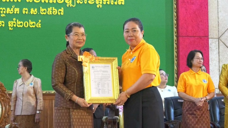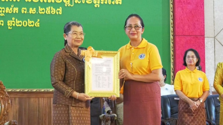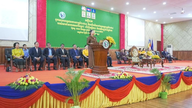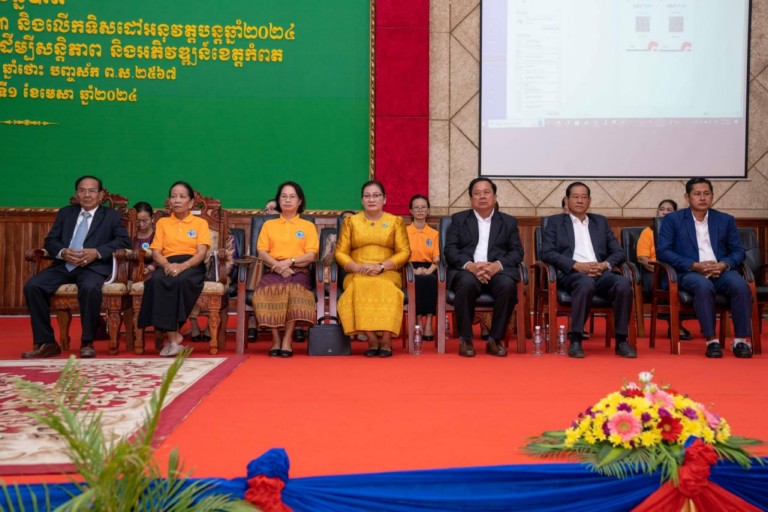 នាព្រឹកថ្ងៃចន្ទ ទី១ ខែមេសា ឆ្នាំ២០២៤ សម្តេចកិត្តិសង្គហបណ្ឌិត ម៉ែន សំអន ឧត្តមប្រឹក្សាផ្ទាល់ព្រះមហាក្សត្រ នៃព្រះរាជាណាចក្រកម្ពុជា និងជាប្រធានសមាគមនារីកម្ពុជា ដើម្បីសន្តិភាព និងអភិវឌ្ឍន៍ បានអញ្ជើញជាអធិបតីក្នុងពិធីសន្និបាតបូកសរុបលទ្ធផលកាការងារ របស់សាខាសមាគមនារីកម្ពុជា ដើម្បីសន្តិភាព និងអភិវឌ្ឍន៍ខេត្តកំពត ប្រចាំឆ្នាំ២០២៣ និងលើកទិសដៅអនុវត្តបន្ត ឆ្នាំ២០២៤ ដែលបានរៀបចំឡើងនៅសាលសន្និសីទបូកគោ សាលាខេត្តកំពត។