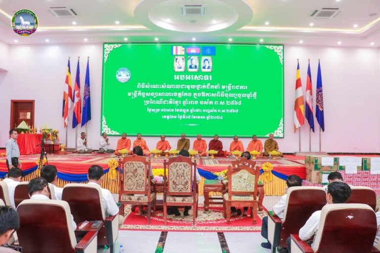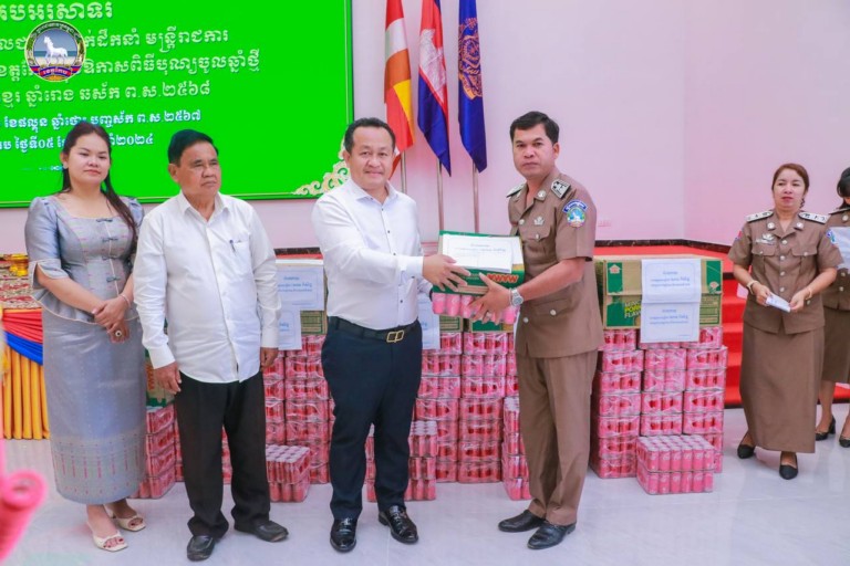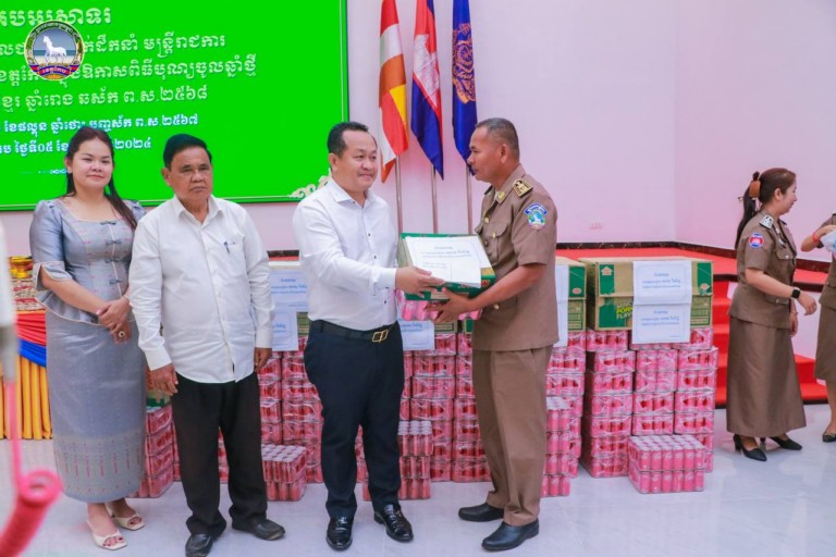 ក្នុងឱកាសនោះដែរ ឯកឧត្តម អភិបាលខេត្ត ក៏បានផ្តាំផ្ញើ ដល់ថ្នាក់ដឹកនាំស្ថាប័ន ទាំងរដ្ឋ និងឯកជន ត្រូវចូលរួមកែលំអ កាត់កោ បោសជ្រះ និងតុបតែងលំអ ភ្លើងពណ៍ រៀបចំជាសង្ក្រានឆ្នាំថ្មី អោយបានសមរម្យ ដើម្បីទទួលទេវតាឆ្នាំថ្មី និងជាកិត្តិយសសម្រាប់អង្គភាព ជាពិសេសខេត្តកែបរបស់យើង។ ក្នុងនោះដែរ ឯកឧត្តម អភិបាលខេត្ត ក៏បានផ្តល់ជូនជាវត្ថុអនុស្សាវរីយ៍ជូនពរឆ្នាំថ្មី ដល់មន្ត្រីរាជការសាលាខេត្ត និងថវិកាមួយចំនួនផងដែរ៕អួងវឹង
