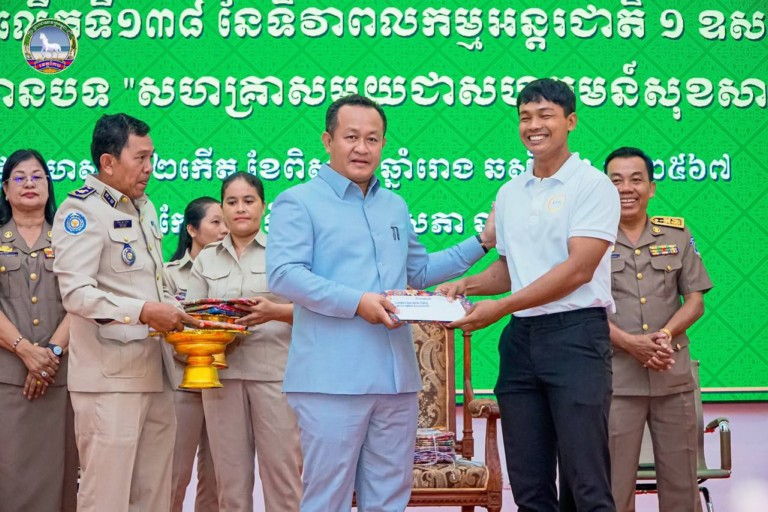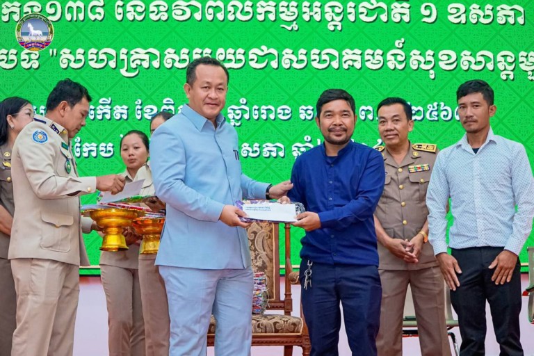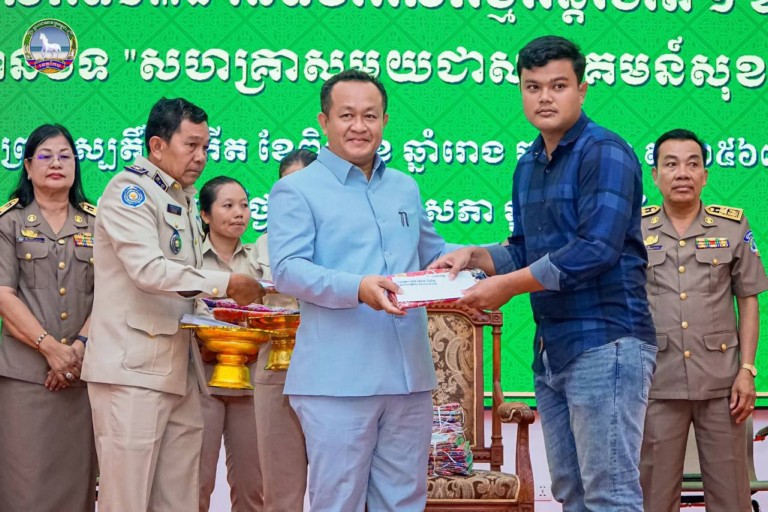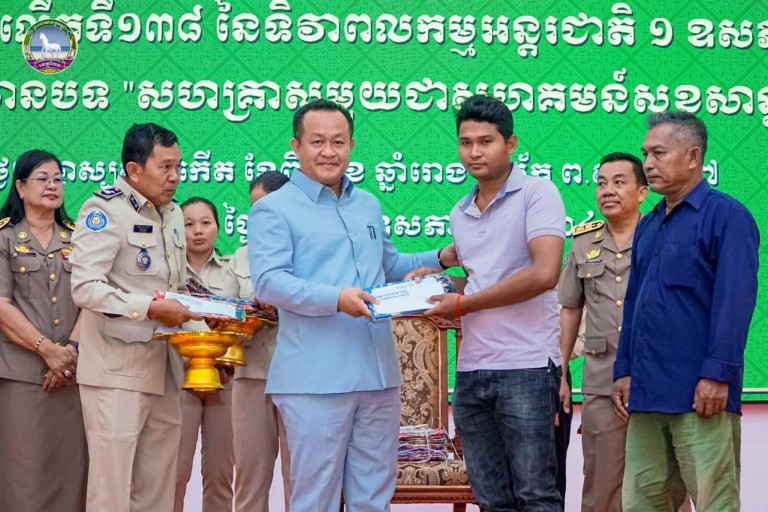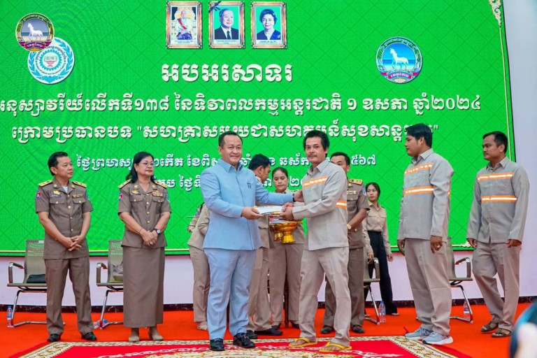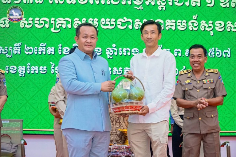 ខេត្តកែប: នៅព្រឹកថ្ងៃទី៩ខែឧសភា ឆ្នាំ២០២៤នេះ ឯកឧត្តម បណ្ឌិត សោម ពិសិដ្ឋ អភិបាលខេត្តកែប បានអញ្ជើញជាអធិបតីភាពក្នុងពិធីអបអរសាទរ ខួបអនុស្សាវរីយ៍ លើកទី138 ទិវាពលកម្មអន្តរជាតិ ១ឧសភា ឆ្នាំ២០២៤ ក្រោមប្រធានបទ “សហគ្រាសមួយ ជាមួយសហគមន៍សុខសាន្តមួយ”នៅក្នុងសាលប្រជុំធំសេះស។