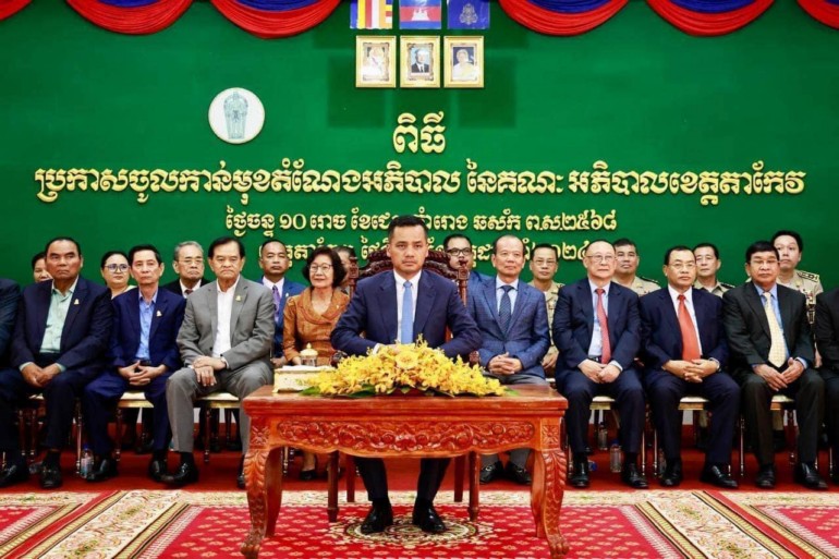 នារសៀលថ្ងៃចន្ទ ១០រោច ខែជេស្ឋ ឆ្នាំរោង ឆស័ក ព.ស.២៥៦៨ ត្រូវនឹងថ្ងៃទី១ ខែកក្កដា ឆ្នាំ២០២៤នេះ ឯកឧត្តមអភិសន្ដិបណ្ដិត ស សុខា ឧបនាយករដ្ឋមន្ដ្រី រដ្ឋមន្ដ្រីក្រសួងមហាផ្ទៃ បានអញ្ជើញជាអធិបតីប្រកាសចូលកាន់មុខតំណែងក្នុងពិធីប្រកាសចូលកាន់មុខតំណែងអភិបាល នៃគណៈអភិបាលខេត្តតាកែវថ្មី ។