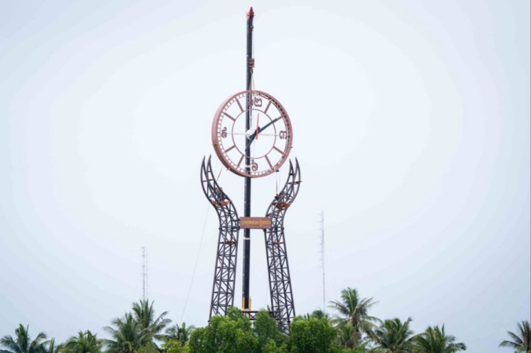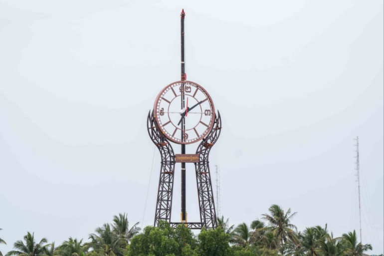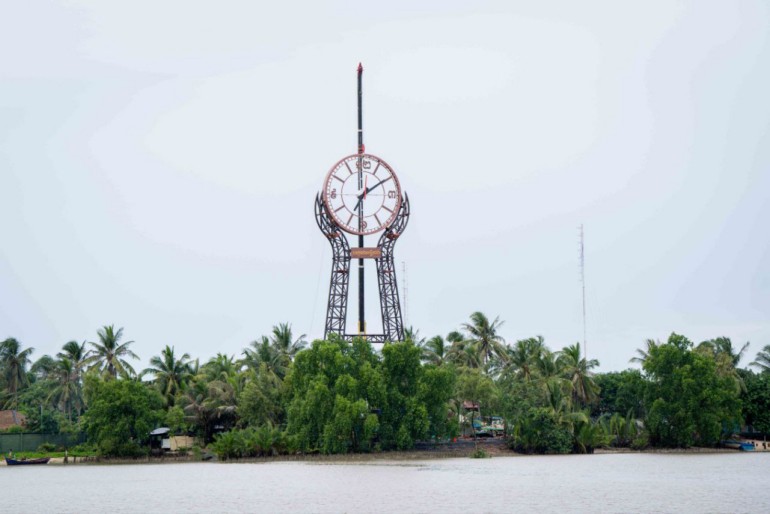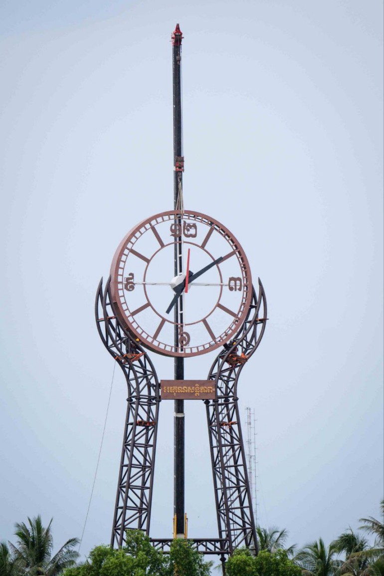 ខេត្តកំពត ៖ សមិទ្ធផលទេសចរណ៍ថ្មីសន្លាងមួយបន្ថែមទៀតដែលបំរើដល់វិស័យទេសចរណ៍ បន្ទាប់ពីឆ្នេរខ្សាច់កម្សាន្ត សួនកម្សាន្ត ពិសេសរូបសំណាកត្រីសេះសមុទ្របាញ់ទឹក គឺនាឡិកាធំ ហើយខ្ពស់ជាងគេក្នុងខេត្តកំពត ដែលមានមុខកាត់អង្កត់ផ្ចិតទំហំ ៩,៧ម៉ែត្រ និងមានកម្ពស់ ៣៥ម៉ែត្រ ត្រូវបានលើកបំពាក់មុខនាឡិកាហើយ នៅព្រឹកថ្ងៃទី២៩ ខែសីហា ឆ្នាំ២០២៤ ក្រោមការពិនិត្យដោយផ្ទាល់ពីសំណាក់ ឯកឧត្ដម ម៉ៅ ធនិន អភិបាលខេត្តកំពត។
