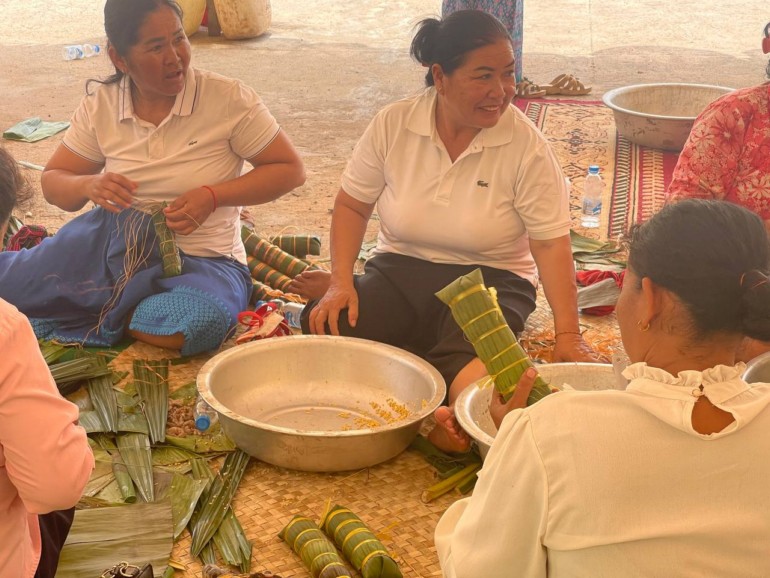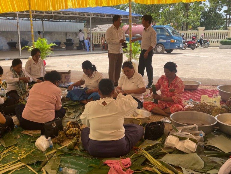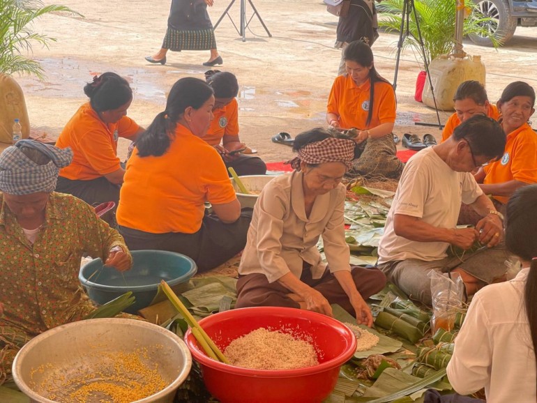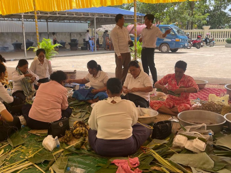 លោកស្រី អ៊ុន រឿន បានអោយដឹងថា វេចនំនាថ្ងៃនេះ យើងប្រើប្រាស់អង្ករដំណើប ១៥០គីឡក្រាម សណ្តែក ៥០គីឡូ សាច់ខ្លាញ់ ជ្រូក៥០គីឡូ ដូងទុំ២០០ផ្លែ ចេកទុំ ១២០ស្និត ស្លឹកចេក ១៧០គីឡូ រួមមានស្លឹកដូង វេចនំកាត និងស្លឹកផ្អាវវេចនំជ្រូកផងដែរ។ នំទាំងអស់ធ្វើសម្រាប់ហូបជុំគ្នា និងការចែករំលែកគ្នាយកទៅវត្ត ឬផ្ញើទៅមិត្តភក្តិ ក្រុមគ្រួសារផងដែរ៕