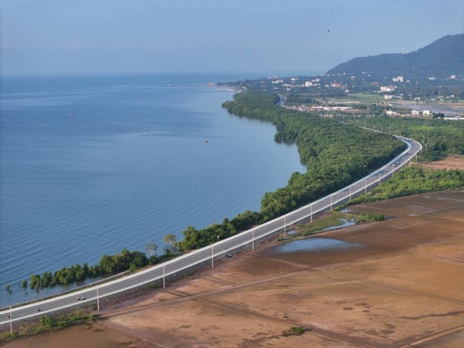 ថ្លែងក្នុងអង្គពិធី ឯកឧត្តមរដ្ឋមន្ត្រី បាន អរគុណជូនដល់ ធនាគារអភិវឌ្ឍន៍អាស៊ី ដែលកន្លងមក និងបច្ចុប្បន្ន តែងតែបានគិតគូរ និងបានចូលរួមចំណែកជាមួយរាជរដ្ឋាភិបាលកម្ពុជា តាមរយៈការផ្តល់ឥណទានសម្បទាន ជំនួយឥតសំណង និងជំនួយបច្ចេកទេសជាបន្តបន្ទាប់ ព្រមទាំងការគាំទ្រនានាសម្រាប់ការអភិវឌ្ឍសេដ្ឋកិច្ច និងសង្គមនៅកម្ពុជាឱ្យកាន់តែល្អប្រសើរ និងរីកចម្រើនបន្ថែមទៀត ជាពិសេសបានជួយដល់ការអភិវឌ្ឍហេដ្ឋារចនាសម្ព័ន្ធ ដឹកជញ្ជូន ការសាងសង់ប្រព័ន្ធលូចម្រោះសម្អាតទឹកកខ្វក់និងស្ថានីយបូមទឹក ការសាងសង់ ប្រព័ន្ធលូរំដោះទឹកភ្លៀង ការសាងសង់ទីតាំងកែច្នៃសំរាម និងការសាងសង់ទីលានទុកដាក់សំរាម នៅតាមទីប្រជុំជននិងក្រុងក្នុងបណ្ដាខេត្តសំខាន់ៗ រួមទាំងការរៀបចំផែនការមេ ការកសាងសមត្ថភាព និងការសិក្សាគម្រោងជាច្រើនទៀតផងដែរ។ ឯកឧត្តមរដ្ឋមន្ត្រី បានលើកឡើង ពីសារប្រយោជន៍នៃវិថីនេះដែលបាន និងកំពុងជួយសម្រួលដល់បងប្អូនប្រជាពលរដ្ឋដែលរស់នៅក្នុងតំបន់ប្រមាណជាង ៦ ០០០គ្រួសារ ក្នុងការធ្វើចរាចរណ៍ដឹកជញ្ជូន និងការធ្វើដំណើរផ្សេងៗបានឆាប់រហ័ស និងមានសុវត្ថិភាព ជាពិសេសជួយទាក់ទាញសក្តានុពលទេសចរណ៍ និងជំរុញការអភិវឌ្ឍផ្សេងៗនៅតាមតំបន់ឆ្នេរមាត់សមុទ្រទាំងមូលឱ្យកាន់តែរីកចម្រើន និងល្អប្រសើរឡើងបន្ថែមទៀត។ វិថីនេះក៏បាននិងកំពុងដើរតួនាទីជាខ្សែផ្លូវលើកសម្រស់ទេសចរណ៍ខេត្តកែបឱ្យកាន់តែស្រស់ស្អាត និងមានរបៀបរៀបរយ តាមរយៈការបង្កើតឱ្យមានចំណតរថយន្ត ផ្លូវជិះកង់ និងផ្លូវថ្មើរជើងសម្រាប់ការដើរកម្សាន្តរបស់បងប្អូនប្រជាពលរដ្ឋ និងភ្ញៀវទេសចរជាតិ-អន្តរជាតិនានា។ បន្ថែមពីនេះ វិថីនេះ ក៏ជាខ្សែផ្លូវតភ្ជាប់ពីក្រុងកែបទៅកាន់តំបន់សហគមន៍ទេសចរណ៍និងនេសាទនៅក្នុងឃុំអង្កោល និងលាតសន្ធឹងឆ្លងកាត់តំបន់កសិកម្ម តំបន់ស្រែអំបិល តំបន់ព្រៃកោងកាង និងតភ្ជាប់ជាមួយផ្លូវខេត្តលេខ១៣៣២ ក្នុងទិសដៅទៅមក រវាងស្រុកដំណាក់ចង្អើរ និងច្រកលក ខេត្តកំពត(ព្រំដែនកម្ពុជា-វៀតណាម) រួមទាំងតភ្ជាប់ជាមួយហេដ្ឋារចនាសម្ព័ន្ធខ្សែផ្លូវមួយចំនួននៅក្នុងភូមិសាស្ត្រខេត្តកែប ដើម្បីភ្ជាប់ទៅកាន់តំបន់ទីប្រជុំជន តំបន់ភូមិឋាន និងតំបន់ផ្សេងៗទៀតនៅក្នុងខេត្តកែប។