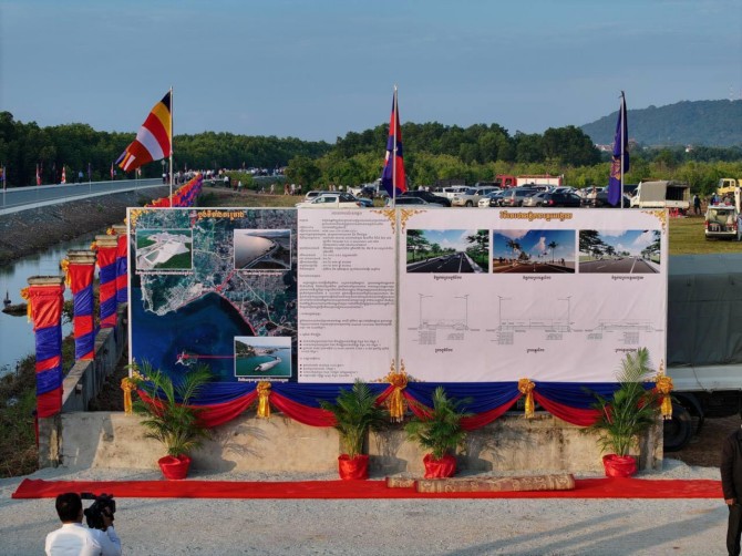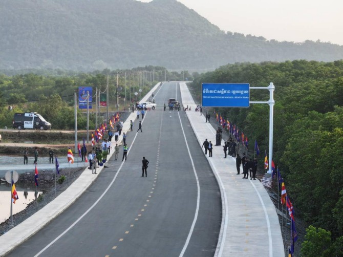 នាព្រឹកថ្ងៃទី១១ ខែវិចិ្ឆកា ឆ្នាំ២០២៤ ឯកឧត្តម ប៉េង ពោធិ៍នា រដ្ឋមន្ត្រីក្រសួងសាធារណការ និងដឹកជញ្ជូន បានអញ្ជើញចូលរួមក្នុងពិធីសម្ពោធបើកឱ្យប្រើប្រាស់វិថីតេជោសន្តិភាពឆ្នេរអង្កោល (ខេត្តកែប) ដែលមានប្រវែងសរុប ១២ ៦៤៥ម៉ែត្រ ក្រោមអធិបតីភាពដ៏ខ្ពង់ខ្ពស់ សម្តេចមហាបវរធិបតី ហ៊ុន ម៉ាណែត នាយករដ្ឋមន្ត្រី នៃព្រះរាជាណាចក្រកម្ពុជា។ ពិធីនេះក៏មានការអញ្ជើញចូលរួមពី លោក ANTHONY GILL តំណាងធនាគាអភិវឌ្ឍន៍អាស៊ីប្រចាំព្រះរាជាណាចក្រកម្ពុជា និងវត្តមានរបស់ ឯកឧត្តម លោកជំទាវ លោកឧកញ៉ា អ្នកឧកញ៉ា ឧញ៉ា ភ្ញៀវកិតិ្តយសជាតិ-អន្តរជាតិ ថ្នាក់ដឹកនាំក្រសួងសាធារណការ និងដឹកជញ្ជូន លោកគ្រូ អ្នកគ្រូ ប្អូនៗសិក្សានុសិស្ស និងបងប្អូនប្រជាពលរដ្ឋដែលរស់នៅទីនោះផងដែរ។