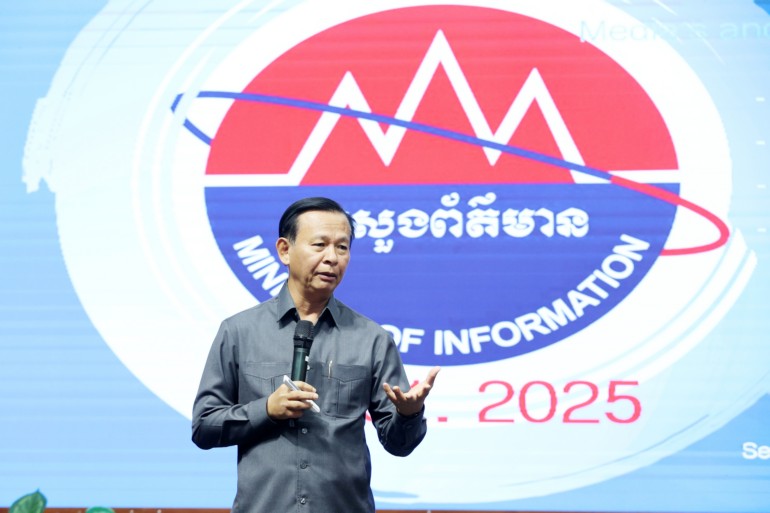 នេះជាការថ្លែងរបស់ ឯកឧត្តម សុខ ចាន់ភក្តី រដ្ឋលេខាធិការ តំណាង ឯកឧត្តម នេត្រ ភក្ត្រា រដ្ឋមន្ត្រីក្រសួងព័ត៌មាន ក្នុងឱកាសអញ្ជើញជាអធិបតីភាពក្នុងពិធីបើកសិក្ខាសាលាផ្សព្វផ្សាយស្វែងយល់អំពីធម្មនុញ្ញវិជ្ជាជីវៈសារព័ត៌មាន និងក្រមសីលធម៌វិជ្ជាជីវៈអ្នកសារព័ត៌មាននៅកម្ពុជា សហការរៀបចំដោយក្រសួងព័ត៌មាន និងសមាគមសារព័ត៌មានអេឡិចត្រូនិច អឹម អេស ជេ នៅព្រឹកថ្ងៃទី១១ ខែមករា ឆ្នាំ២០២៥ នាសាលចតុម្មុខមង្គលទីស្តីការក្រសួងព័ត៌មាន ដោយមានការចូលរួមសិក្សាស្វែងយល់ពីអ្នកសារព័ត៌មានប្រមាណជាង ៤០០នាក់ ។