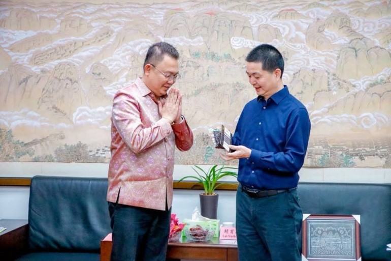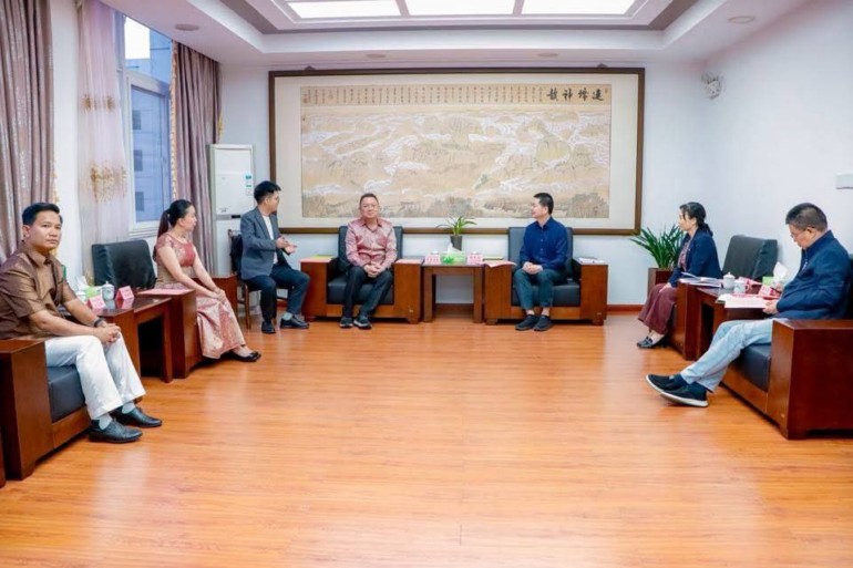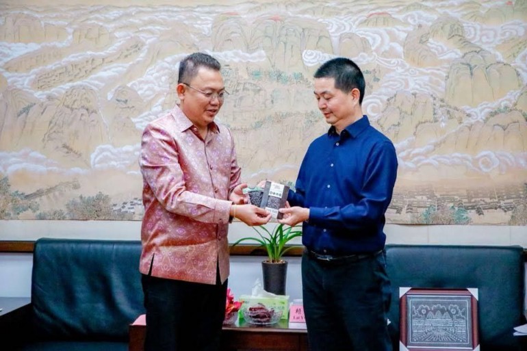 (កំពត-ចិន)៖ លោក អ៉ឹម ច័ន្ទសោធន អភិបាល នៃគណៈអភិបាលស្រុកទឹកឈូ ខេត្តកំពត បានដឹកនាំក្រុមការងារចូលជួបសម្តែងការគួរសម និងពិភាក្សាពីការផ្លាស់ប្តូរវប្បធម៌ តំបន់សក្តានុពលទេសចរណ៍ ផលិតផលកសិកម្ម និងការងាររៀបចំក្រុម កីឡាបេស្បល (Baseball) ជាមួយលោក LAI YUZHONG អភិបាលស្រុក ព្រមទាំងថ្នាក់ដឹកនាំនៃស្រុកលាន ឆឹង (LIAN CHENG) នៅសាលប្រជុំសាលាស្រុក ខេត្ត FU JIAN ប្រទេសចិន កាលពីថ្ងៃអង្គារ ៧កើត ខែកត្តិក ឆ្នាំម្សាញ់ សប្តស័ក ពុទ្ធសករាជ ២៥៦៩ ត្រូវនឹងថ្ងៃទី២៨ ខែតុលា ឆ្នាំ២០២៥។