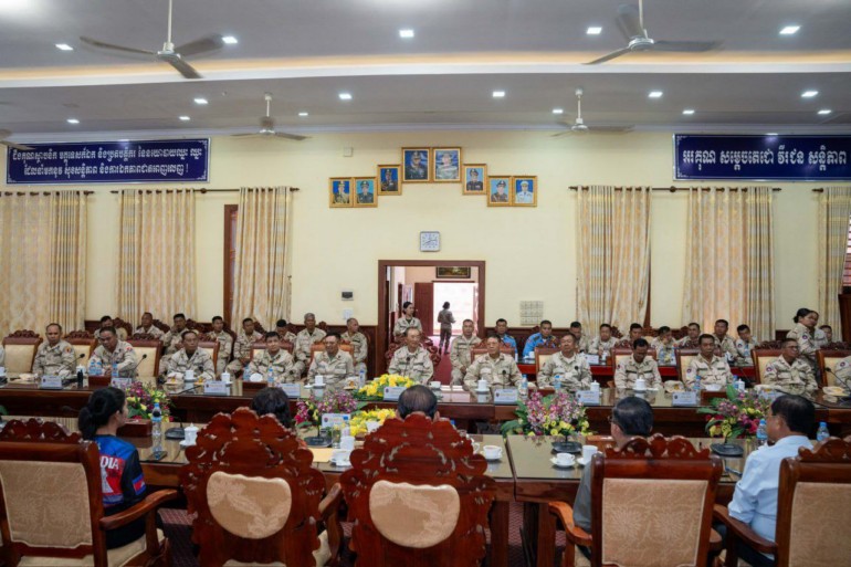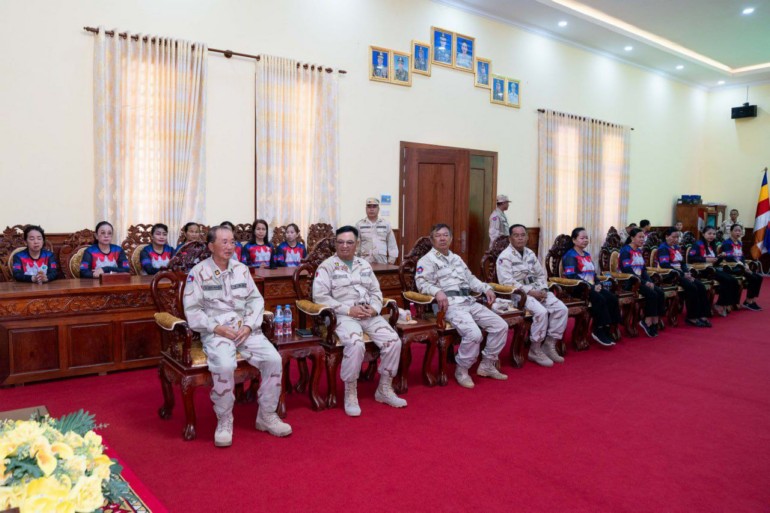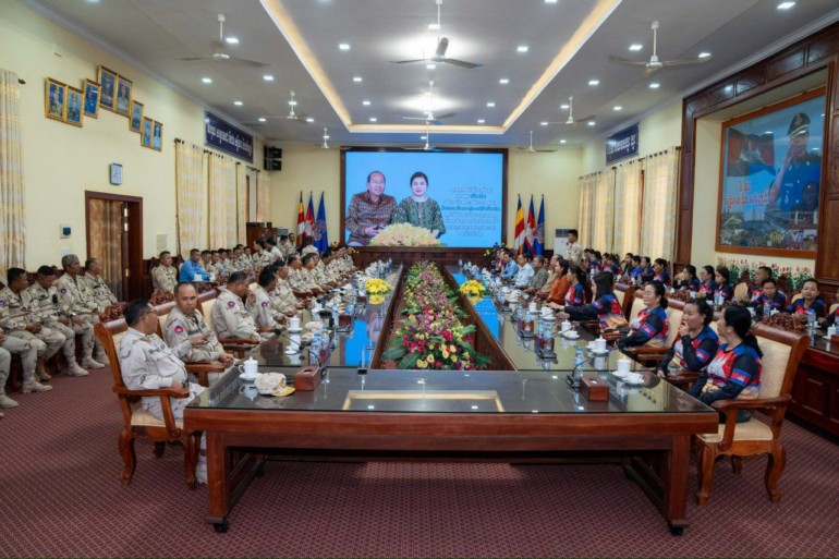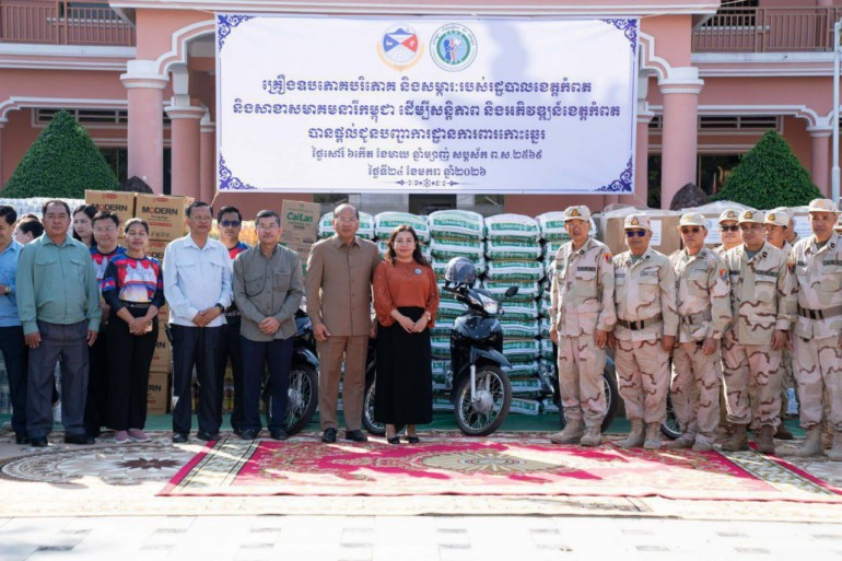 ខេត្តកំពត៖ នាព្រឹកថ្ងៃទី២៤ ខែមករា ឆ្នាំ២០២៦ ឯកឧត្តម ម៉ៅ ធនិន អភិបាលនៃគណៈអភិបាលខេត្តកំពត និងលោកជំទាវ ហ៊ុន ចាន់ធី ម៉ៅធនិន ប្រធានកិត្តិយសសាខាសមាគមនារីកម្ពុជាដើម្បីសន្តិភាព និងអភិវឌ្ឍន៍ខេត្ត បានអញ្ជើញចុះសួរសុខទុក្ខសំណេះសំណាលជាមួយនាយនាវី នាយនាវីរង និងពលនាវី នៃបញ្ជាការដ្ឋានការពារកោះ-ឆ្នេរ កងទ័ពជើងទឹក ដើម្បីពង្រឹងសាមគ្គីភាពរវាងសមរភូមិក្រោយ និងសមរភូមិមុខ។