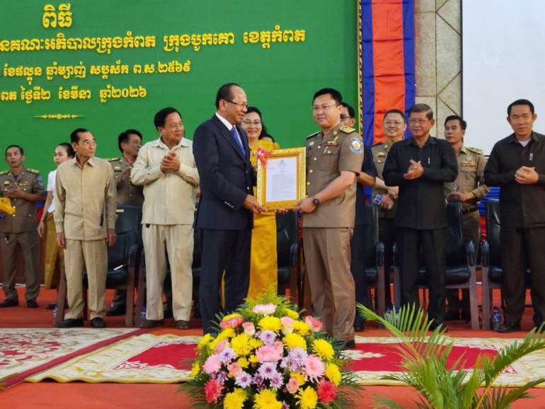 [កំពត]៖ នាព្រឹកថ្ងៃទី២ ខែមីនា ឆ្នាំ២០២៦ នៅសាលសន្និសីទបូកគោ ខេត្តកំពត ឯកឧត្តមបណ្ឌិត ម៉ៅ ធនិន អភិបាលនៃគណៈអភិបាលខេត្តកំពត បានអញ្ជើញជាអធិបតីក្នុងពិធីប្រកាសផ្ទេរភារកិច្ចអភិបាលក្រុងទាំងពីរនៃខេត្តកំពត។ ក្នុងឱកាសនោះ ឯកឧត្តមបានដាក់ចេញនូវទិសដៅយុទ្ធសាស្ត្រសំខាន់ៗ ដើម្បីជំរុញឱ្យក្រុងកំពត និងក្រុងបូកគោ ក្លាយជាមជ្ឈមណ្ឌលទេសចរណ៍ដ៏មានសក្តានុពលបំផុត។