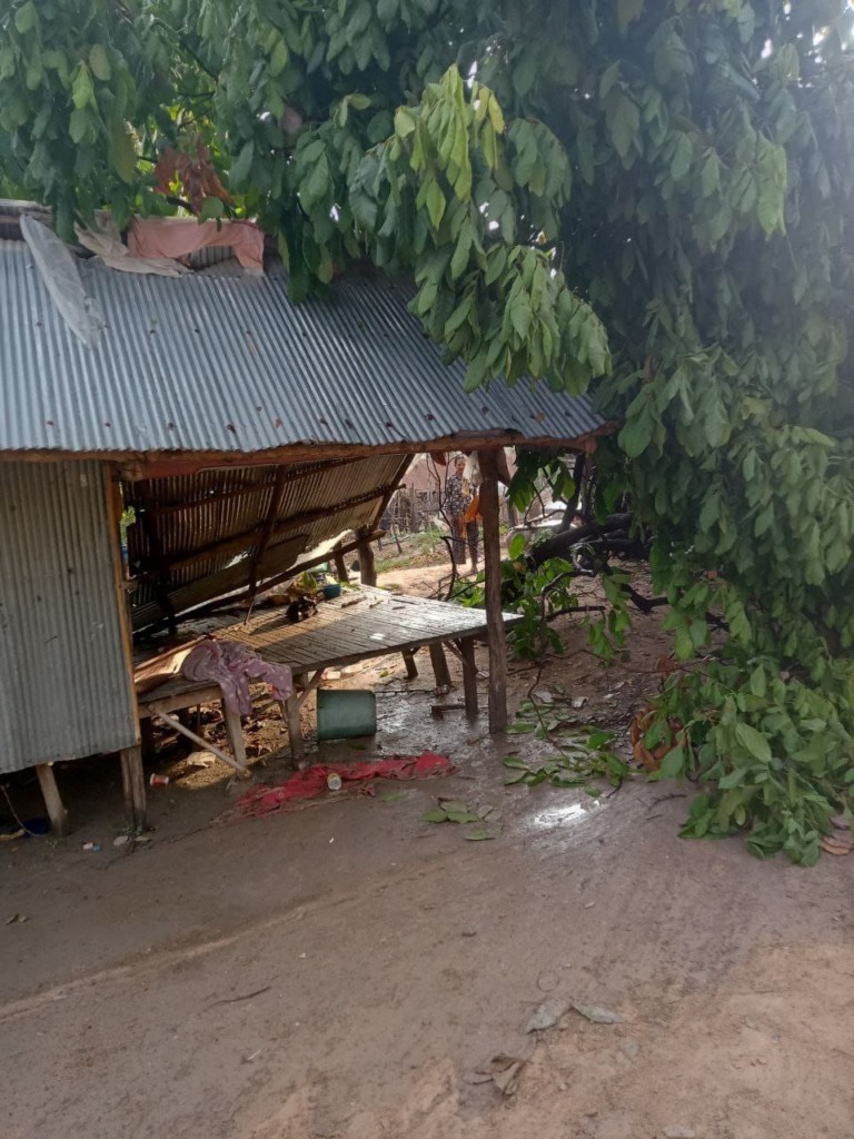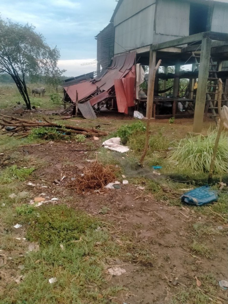 ខេត្តកំពង់ឆ្នាំង ៖ នៅវេលាម៉ោង១១និង០០នាទីយបថ្ងៃទី២៦ខែឧសភាឆ្នាំ២០២៣ ភ្លៀងលាយឡំនិងខ្យល់កន្ត្រាក់បណ្តាលអោយផ្ទះប្រជាពលរដ្ឋ៣ឃុំក្នុងស្រុកកំពង់លែង រងផលប៉ះពាល់ផ្ទះ