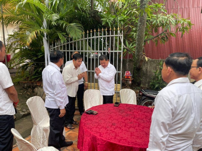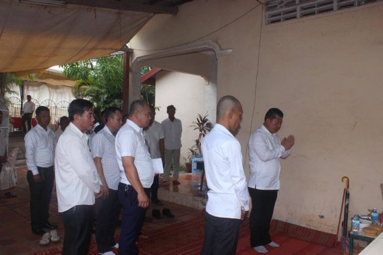 (កំពត) ៖ នារសៀល ថ្ងៃសៅរ៍ ៧រោច ខែជេស្ឋ ឆ្នាំថោះ បញ្ចស័ក ព.ស ២៥៦៧ ត្រូវនឹងថ្ងៃទី១០ ខែមិថុនា ឆ្នាំ២០២៣ ឯកឧត្តម ឧត្តមសេនីយ៍ឯក ទូច ពលៈ ប្រធាននាយកដ្ឋាននគរបាលការពារព្រំដែនទឹក និងជាអគ្គលេខាធិការរង នៃគ.ជ.ស.ស បានដឹកនាំអនុប្រធាននាយកដ្ឋាន នាយ-នាយរងការិយាល័យ មេបញ្ជាការ-មេបញ្ជាការរង នៃវរសេនាតូចលេខ៤៣០-២៤១ និងមន្ត្រីក្រោមឱវាទ ចូលរួមគោរពវិញ្ញាណក្ខន្ធសពភរិយារបស់លោក ឯក សំអុល អតីតមេបញ្ជាការ វរសេនាតូចនគរបាលការពារព្រំដែនទឹកលេខ២៤១ ប្រចាំខេត្តកំពត ។