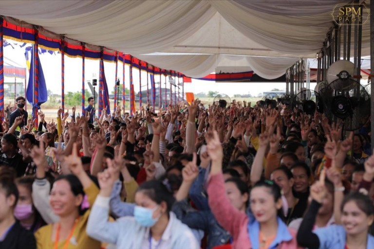 សម្តេចតេជោ ហ៊ុន សែន ពិតជារីករាយដែលបានអញ្ជើញមកជួបជាមួយបងប្អូនកម្មករ កម្មការិនីនៅខេត្តតាកែវនេះជាថ្មីម្ដងទៀត បន្ទាប់ពីបានជួបកាលពីឆ្នាំ២០១៩កន្លងទៅ។សម្តេចតេជោបានមានប្រសាសន៍ថា រោងចក្រសហគ្រាសដែលបានពង្រាយនៅទូទាំង ២៥ ខេត្តក្រុងនៅទូទាំងប្រទេសកម្ពុជា គឺជាគោលនយោបាយពង្រាយរោងចក្រ ទៅតាមបណ្ដាខេត្ត របស់រាជរដ្ឋាភិបាល ដើម្បីបង្កើនការងារជូនដល់ប្រជាពលរដ្ឋដោយផ្ទាល់នៅមូលដ្ឋាន មិនមែនមានរោងចក្រនៅតែរាជធានីភ្នំពេញមួយប៉ុណ្ណោះទេ។ សម្ដេចតេជោ នាយករដ្ឋមន្ត្រីបានបញ្ជាក់ថា បន្ទាប់ពីបានចុះជួបជាមួយកម្មករ និយោជិតនៅរាជធានីភ្នំពេញ និងតាមបណ្ដាខេត្តមួយចំនួនរួចហើយ សម្ដេចនឹងបន្តចុះជួបជាមួយកម្មករនិយោជិតនៅតាមបណ្ដាខេត្តមួយចំនួនទៀត ដូចជា ខេត្តពោធិ៍សាត់ កំពង់ចាម និងខេត្តស្វាយរៀងជាដើម។